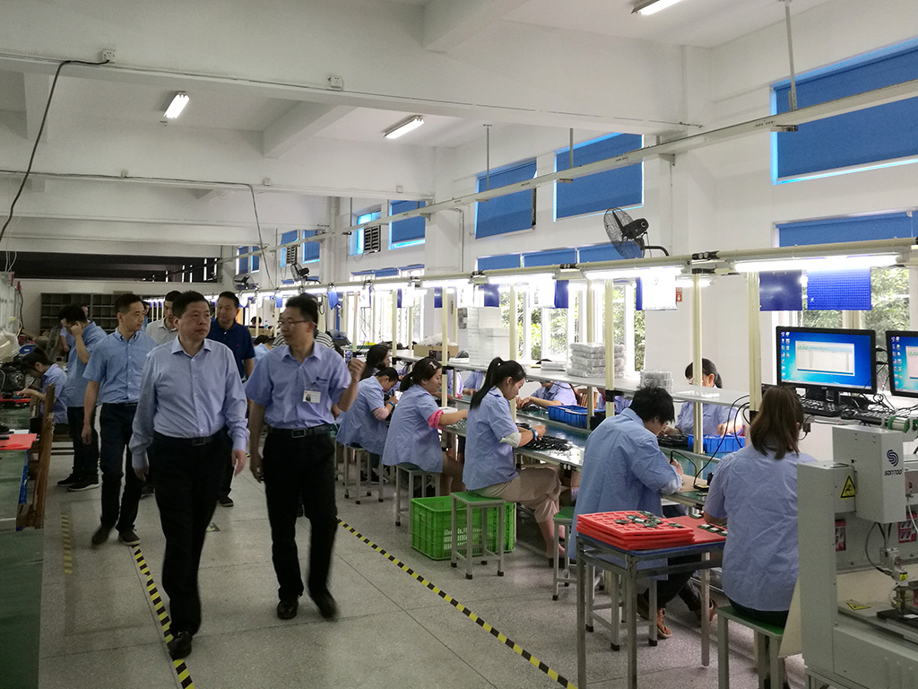 林升执行李总一行业应先到了安模平台制模产线和吹塑生产技术产线进入游览了机床精加工拍摄工作,并在600吨级离心式吹塑生产技术机前看出产工作。完后又到了安远平台自动安装生产技术产线实地调研考擦机动车车载空调打开屏幕总成自动安装生产技术线和POS机及扫一扫枪的自动安装生产技术出产线,详解认知出产现象和产品设备生产技术工作,还饶有心趣地到了安远平台新创建成的衡温、恒湿、无尘成品库防靜電产线,看SMT贴片机拍摄操作,认知操作现象。